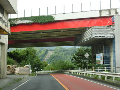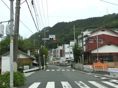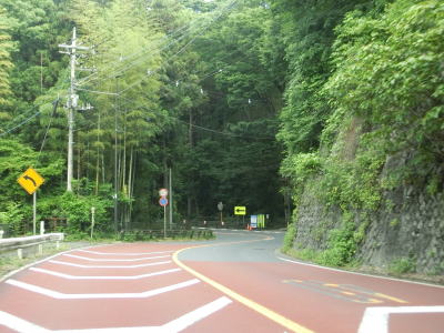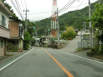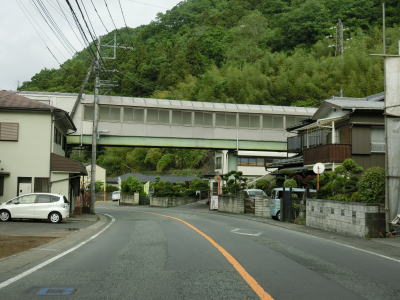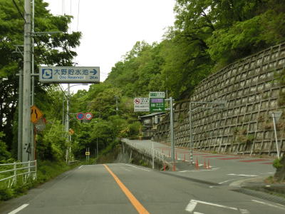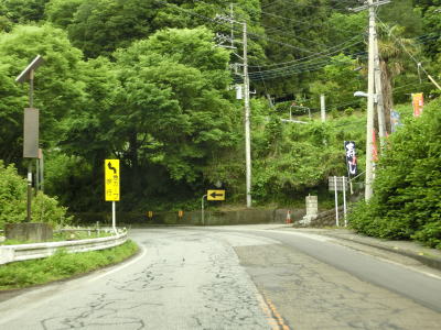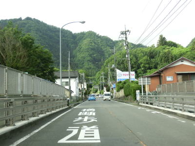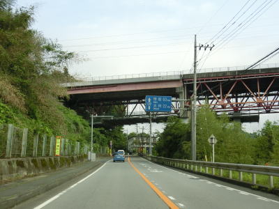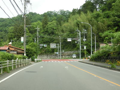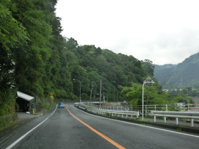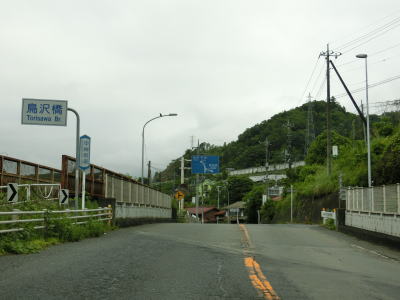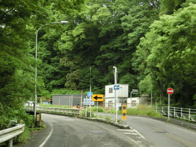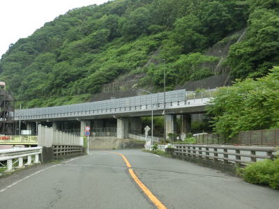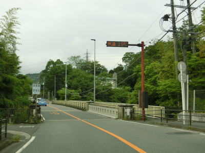 | やや急な勾配を下っているとE20中央道の鶴川大橋をくぐる。橋の下の前方に八ッ沢発電所の送水鉄管が見える。さらに下っていると左、右と急カーブを曲がって鶴川橋を渡って山梨r506上野原高校入口交差点を通過する。 | ||
