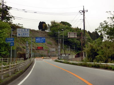 | 上野原市役所の東で山梨r33交差点を通過するが、単純な直進ではなく左斜め方向へ進む。昼間は結構交通量の多い交差点にもかかわらず信号機も右折車線もは設置されていない。r33交差点からは6%の勾配を下り、市役所の南を通り過ぎて左にカーブして山梨r30交差点を通過する。 | ||