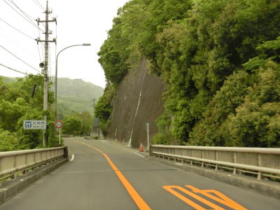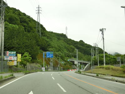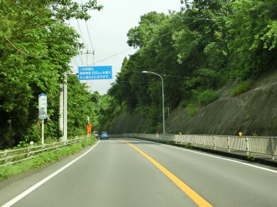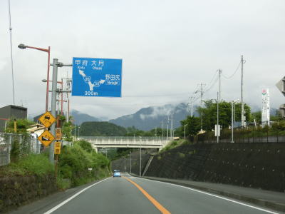 | 山梨r507交差点を過ぎてすぐに左にカーブしてJR中央本線の上を鳥沢橋で越える。桂川の左岸を走っていると左カーブを曲がって大呼戸橋で谷田川を渡って大月市に入る。市境の手前で雨量通行規制区間の起点を通過する。 | ||