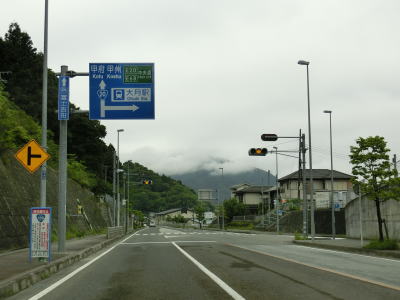 | 駒橋交差点からの緩やかな勾配を上っていると大月第一トンネルに入り、緩やかな下り勾配になる。トンネルを出て少し走ると市道との大月駅入口交差点を通過する。右折して市道を約200m走るとR20現道と山梨r502との大月駅前交差点があり、さらに進むとJR中央本線と富士急行大月線の大月駅がある。 大月駅入口交差点からも下り勾配が続いており、勾配が変化した後にR139都留高校南交差点を通過する。前述のとおり、大月バイパスが全線開通したのは2022年4月23日だが、都留高校南交差点から東の区間は2007年には供用されていた。なお、走行した日(2023年5月21日)は大月市街方面のR139が舗装工事のため全面通行止であった。 |