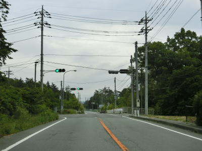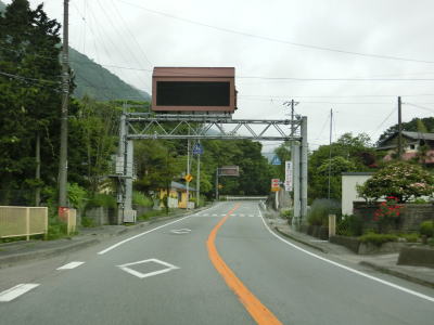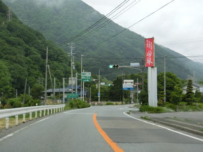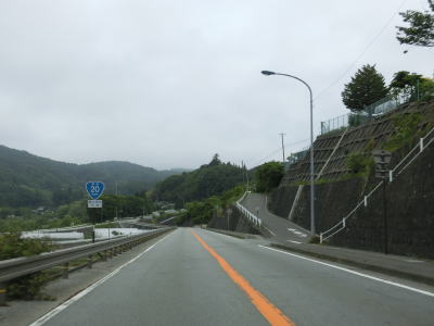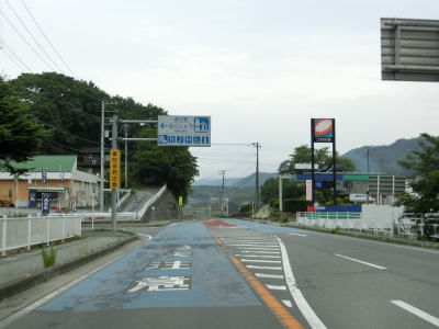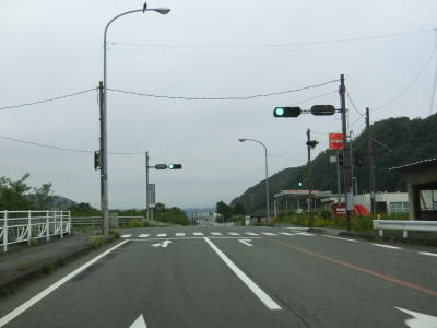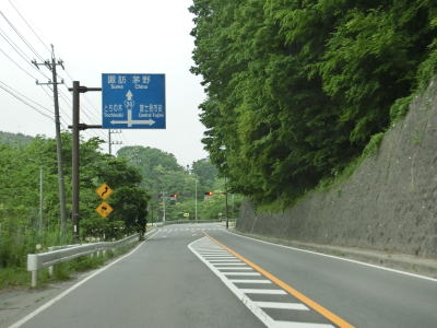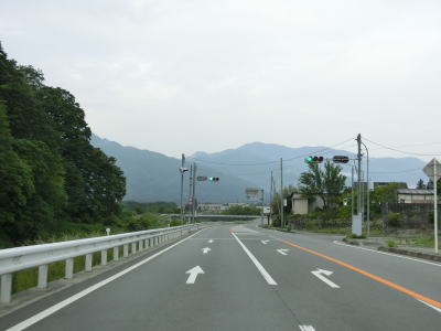 | 山梨r614白州農協前交差点の直後に道の駅「はくしゅう」を通過する。敷地はr614にも面しており出入りも可能である。道の駅を過ぎると緩やかな勾配を下った後に平坦になる。早朝という条件のせいもあるが二桁国道にしては交通量は少ない。 | ||