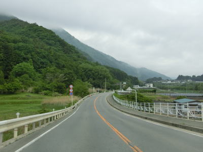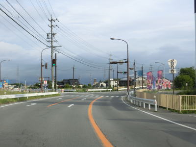 | R141一ッ谷交差点からしばらくは釜無川のある西側にも建物が存在しているが、緩やかな勾配を上った先で再び堤防上を走るようになる。見通しが良く非常に走りやすい2車線道路を走っていると市道との桐沢橋東詰交差点を通過する。 | ||