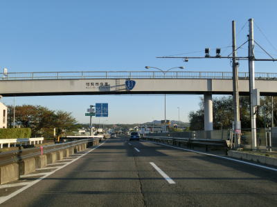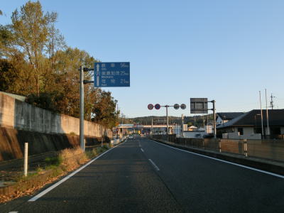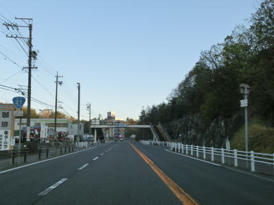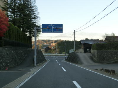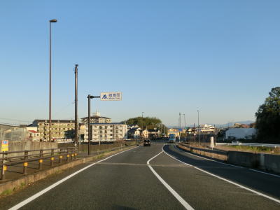 | 大きく左にカーブした後に造成住宅地の出入口に当たる市道との交差点を通過し、その先から登坂車線が現れる。登坂車線がある状態でも大きくカーブした上りの2車線道路という状況は変わらない。沿線に工場等がある状態になってからも登坂車線は続いており、ミニストップの前で終わる。登坂車線の距離は約1.4kmである。 | ||
