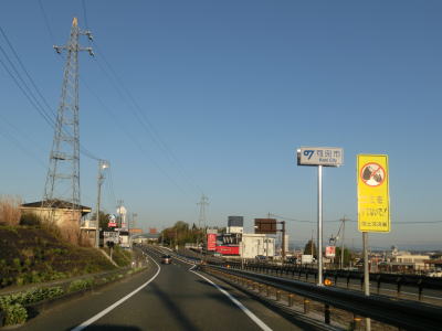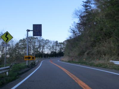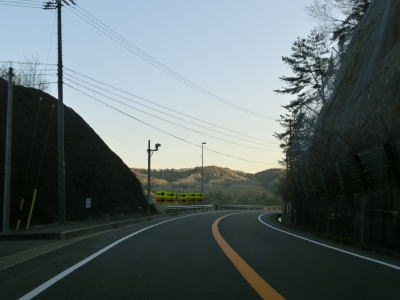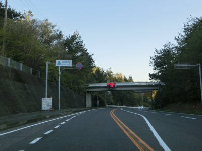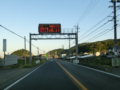 | ハイスピードで流れている2車線道路を走っていると岐阜r65交差点を通過する。次月峠から4.5kmの地点であり、このr65交差点までが雨量規制区間に当たる。r65交差点を過ぎても道路状況に大きな変化はなく平坦かつ直線的な2車線道路を西の方角に向かって走る。見通しが良く速度が出やすい状況だが、それ故交差する道路に出入りする車両との衝突事故が多いのか、注意を促す看板やペイントが施されていた。また、電光掲示板に“予告”とされている情報が表示されていたため、工事予告かと思ったら次月峠の雨量通行規制の事を表示していた。既に次月峠の規制区間を通り過ぎているため、情報としてはあまり有益でないように思える。 | ||