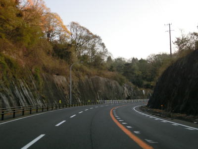 | 御嵩町に入ってからは峠を越えているため下り勾配に転ずる。ゴルフ場の間を通っている間だけ反対側の南向き車線に登坂車線が設置されている。峠の土岐市側と勾配は大差ないが、カーブは少なく御嵩町側の方が若干走りやすい。右カーブを曲がって6%の勾配を下るが、その標識の少し手前で市境を通過しており瑞浪市に入っている。 | ||