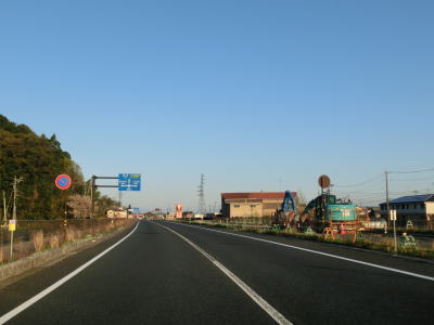 | 道路の北側には拡幅用地が確保されており工事が行われている場所もあった(ただし拡幅工事か否かを確認していない)。井尻交差点から約3.2km走ると岐阜r83古屋敷交差点を通過する。交差点の北にはr83とr341の交差点があり、西にはr341がR21まで延びていたが、道路改修によりR21に出入りできなくなっている。 古屋敷交差点から少し走ると可児市に入り、道の駅「可児ッテCANITTE」を通過する。道の駅の敷地自体はR21に接しているが、駐車場への出入りは可児御嵩IC東交差点から市道(?)を経由する形になる。 |