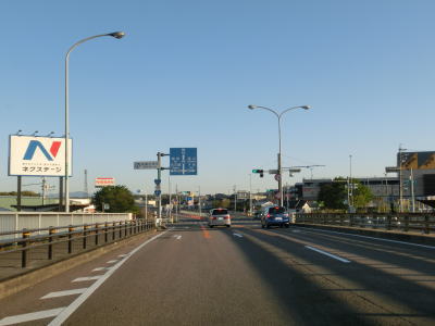 | 岐阜県南東の瑞浪市の市街地から離れた位置にあるR19・岐阜r352山野内交差点がR21の起点だが、R19に重複しているため案内標識に表記されていない。山野内交差点から走り始めてすぐに日吉川という小さな川を渡るが、その川は市境となっており土岐市に入る。起点のある瑞浪市域を走っているのは僅か150m程度である。木曽川、JR中央本線と中央道の間を西に向かっており、片側2車線と幹線国道の雰囲気が漂っている。しかし、早朝のため交通量は少なく流れは良好である。 | ||