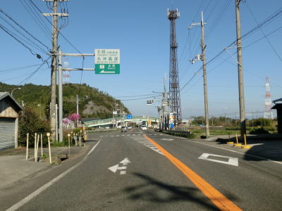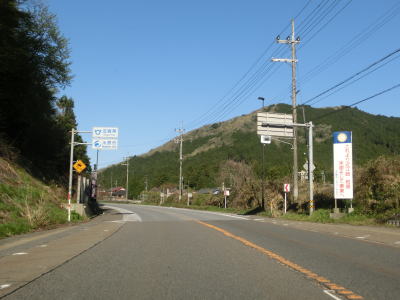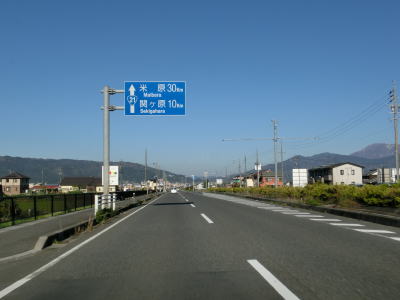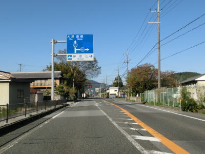 | JR東海道本線と並走しながら集落の北側を走り抜ける。すぐ南の山裾には名神が並走しており、やや北の東海道新幹線はトンネルで県境をパスしている。県境とは思えない程緩やかな上り勾配の2車線道路を走っていると峠でも河川でもない場所で滋賀県米原市に入る。その後は左側に名神が近接してきて、名神と東海道本線の間を走る。 | ||