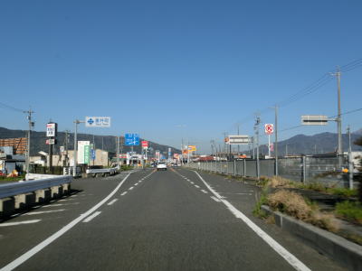 | 垂井町に入ると中央分離帯がなくなり対面2車線道路になる。交通量はだいぶ少なくなっているためスムースに通過できたが、通勤時間帯や連休などの交通量が多い場合は渋滞するかもしれない。岐阜r228綾戸交差点を通過し、相川橋を渡って西進を続ける。沿線には商業施設が点在しており、意外に賑やかな印象を受ける。また、比較的規模の大きい工場があるのも特徴である。 | ||