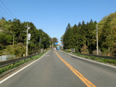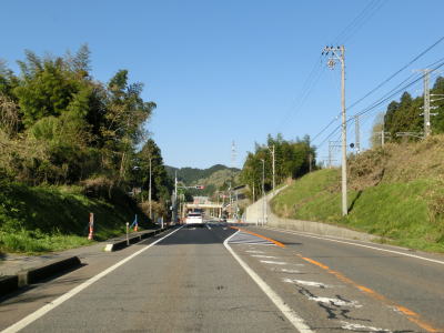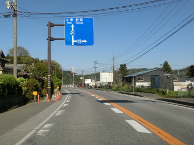 | 東海道新幹線の下から登坂車線が現れる。勾配は特別急という訳ではないが、約900mに渡って続いている。登坂車線がなくなり少しだけ2車線道路を走った後に名もなき峠を越えて下りに転ずる。反対車線も登坂車線が設けられているが、距離は200m程度と短い。 やや急な勾配を下ると比較的大きな集落に入り、右側にJR東海道本線が隣接した状態で並走する。岐阜r229と交差しているがr229がR21の下を通っており接続していない。そのためr229との往来は西にある信号機のない交差点のような場所を介する必要がある。 |