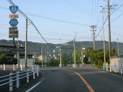| R23岡崎バイパスの南を並走していると道の駅「筆柿の里・幸田」を通過する。バイパスからも直接利用可能だが名古屋方面の出入口しか設置されていない。よって豊橋方面に走っている場合は幸田須美ICもしくは幸田桐山ICで降りて現道を走らなければならない。大きく右にカーブして岡崎バイパスの高架橋の下をくぐり、左カーブを曲がって元屋敷集落を走っていると愛知r325須美交差点を通過する。 | ||
