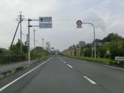 | 奈良県に入ってからは片側2車線道路が続いている。沿線に建物はなく、また信号機付きの交差点もないので昼間であっても比較的流れが良い事が多い。市道との立体交差点を通過すると左側にJR関西本線が隣接した状態で並走、その逆の右側には航空自衛隊の奈良基地と宇和奈辺古墳がある。 | ||