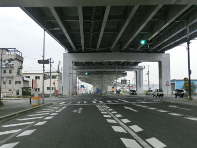 | 横田町交差点から程なくして西名阪道の郡山ICを通過して本線の高架下をくぐる。郡山ICの西に郡山下ツ道JCTがあるが、これは西名阪道とR24京奈和道とのジャンクションである。既に供用されていた京奈和道の郡山南ICに接続する形で2015年3月22日に供用が開始された。なお、西名阪の郡山ICと京奈和道との往来は不可能であり、また郡山下ツ道JCT〜木津ICの区間は未だ工事すら始まっていない。 奈良市方面の延伸部分の橋脚だけが建っているのを見ながら走っていると天理市に入り、京奈和道の高架の下で奈良r193南六条交差点を通過する。 |