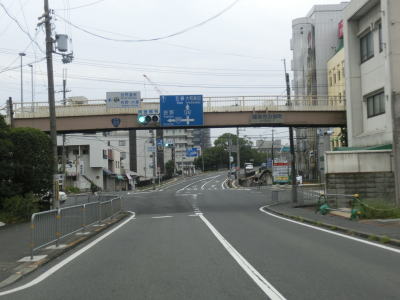 | 2車線もある側道に入るとR308とR369の串刺しおにぎりの横を通過し、平面に下りた所でR369・奈良r1二条大路南1交差点に至る。左折専用車線、左折直進車線がそれぞれ1本ずつ、直進車線が2本もあるが、r1大阪方面への右折はできない。右端の直進車線を走る車両が多いが、これは約250m南のR308・r1三条大路2交差点での右折車両と言える。 | ||