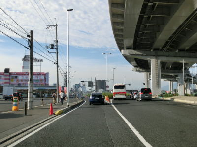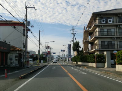 | 53.広い歩道の2車線道路 | 54.歩道設置工事中 | 55.沿線の建物が少なくなっていく |