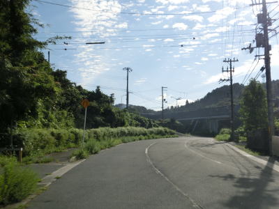 | 白樫交差点を過ぎてからも2車線道路が続いており、このまま伊賀市の市街地まで行けると思い始めたその瞬間センターラインがなくなる。その後も1.8〜2車線の広狭を繰り返しながら治田川と岩根川沿いを走る。 1.8車線幅の狭路で集落を通り抜けていると伊賀コリドールロードとの大内交差点を通過する。右折して約200m進めば名阪国道の大内ICに至る。なお、伊賀コリドールロードとは伊賀と名張周辺の広域農道を繋ぎ合わせた環状道路で場所によっては国道や県道よりも走りやすい区所もある。 |