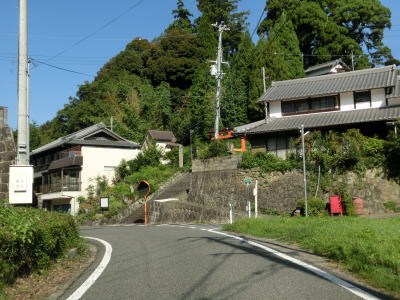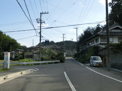 | 右の急カーブを曲がってR25名阪国道から離れて舗装状態の悪い1.5車線幅狭路を走る。緩やかな勾配を下っていると前方に集落が見えてきて、奈良r127交差点が接続している左直角カーブを曲がる。r127交差点からはセンターライン付きの2車線道路になるが、奈良r246交差点までの僅か100mに満たない距離でしかない。 | ||