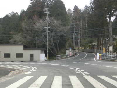 | 遅瀬川に沿った谷筋を走っていると名rあr181・r785交差点を左にカーブしながら通過し、その直後の奈良r4交差点を右折する。短い距離に複数の県道が交差しているとあって案内標識は複雑なものになっており、さらには樹木に隠れている部分もあって見にくい。 | ||