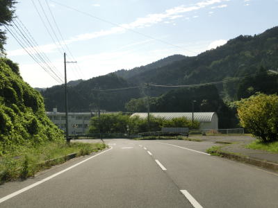 | 勝原集落に入るとセンターラインがなくなり、遅瀬川を渡ってからは道幅が狭くなる。上り勾配の1.8車線幅道路を走っていると上津ダム湖に至る村道との交差点を右にカーブしながら通過する。以降はセンターライン付きの2車線で菅生集落を走り抜ける。 | ||