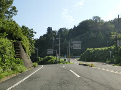 | 中峰集落を通り抜けるとセンターライン付きの2車線道路に戻る。勾配はさほど急ではないが、急カーブが多い。谷筋を下っているとR25名阪国道の新五月橋の下をくぐった直後に五月橋交差点を通過する。これまで上下線が異なる位置で交差していたが、五月橋ICで交差するのは1ヶ所だけである。 | ||