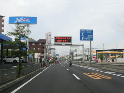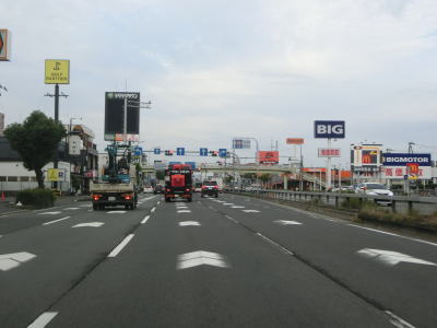 | 住吉公園の西側を通り過ぎた後にR479浜口交差点を通過する。R479は内環状線と呼ばれ、400番台後半の国道ながら幹線道路として機能しており、一桁国道や二桁国道にもひけと取らない道路状況と交通量である。 | ||