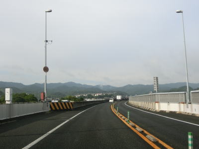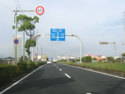 | 大谷交差点からの側道が合流してくるとそのまま左側車線となり片側2車線道路になる。紀の川に架かる紀の国大橋を渡ってR24嘉家作交差点の上を通って平面道路に向かって下る。 | ||