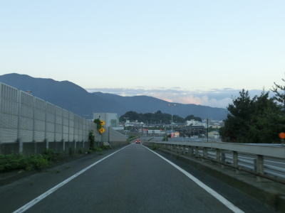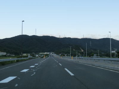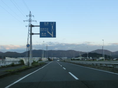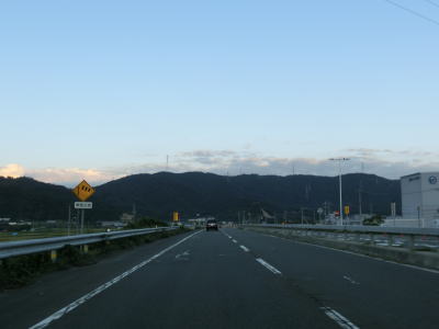 | 旗護山トンネルは市町境でもあり西側は美浜町である。トンネルを出てすぐに佐田ランプへの側道が分岐する。このランプは敦賀市街方面としか接続していない。また、ランプで交差している道路はR27の旧道なのだが、敦賀市街方面が福井r225に降格しているのに対して、若狭町方面は少なくともウォッちずにおいては国道表記のままとなっている。実際には2015年4月1日付でR27の指定を外れて福井県に移管されているので国道ではないと考えられる。案内標識に現道のおにぎりが表記されていない事もあって今回はそのまま直進してバイパスを走行している。なお、佐田ランプは金山バイパスと美浜東バイパスの境のランプでもある。 佐田ランプを通過してすぐに佐田トンネルをくぐるが、旗護山トンネルを同様に上下線で別のトンネルとなっている。佐田トンネルを出て少し走ると福井r118太田ランプを通過する。 |