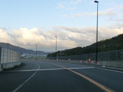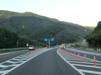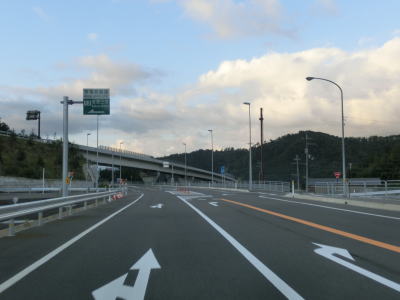 | 16.国吉城トンネルを出ると勾配を下る | 17.佐柿ランプで旧道と合流 | |