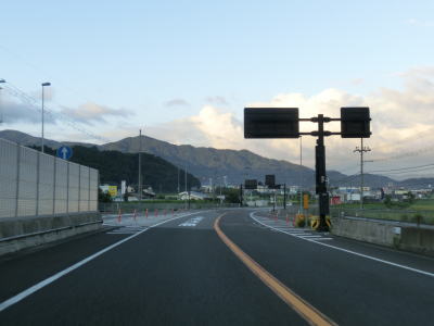 | 国吉城トンネルを出ると左にカーブしながらやや急な勾配を下り、佐柿ランプで旧道と合流する。この佐柿ランプが美浜東バイパスの西端であり、以降は平面を走る対面2車線道路となる。 | ||