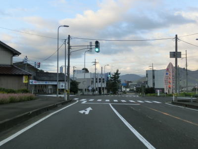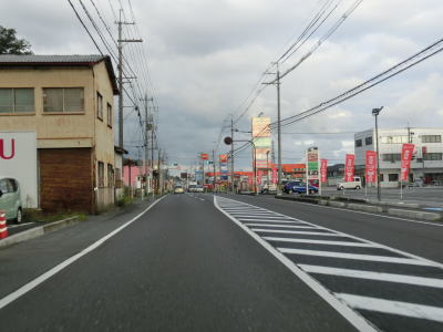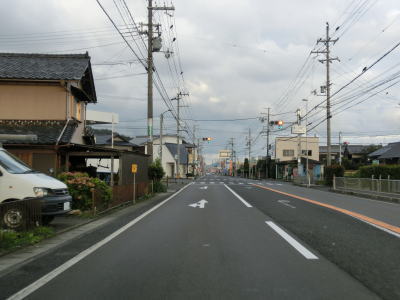 | 41.上中駅前交差点 | 42.交通量の少ない2車線道路を西進 | 43.見通し良好 |
