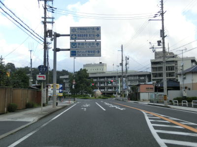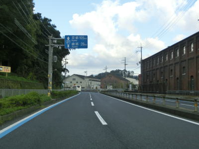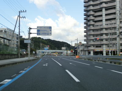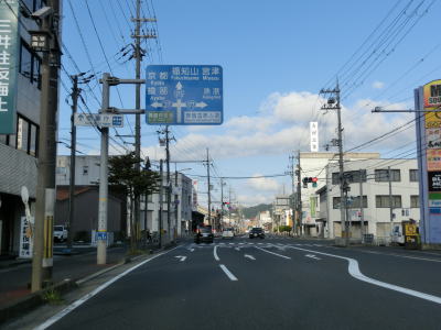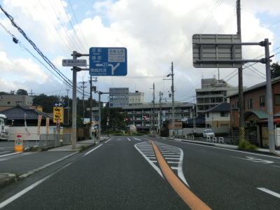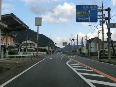| 舞鶴海軍工廠だったジャパンマリンユナイテッドからは桟橋からも海からも離れる。市役所前交差点から約1.8kmで京都r565中舞鶴歩道橋交差点に至るが、ここは左折して京都・綾部・天橋立・宮津方面に進む。舞鶴湾に沿っているr565が狭路の多い府道というせいもあって片側2車線のどちらからでも左折できる。 | ||