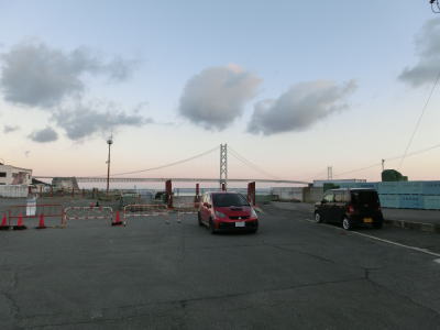 | 49.岩屋港フェリーターミナル跡地 | 50.コルトの奥に見えるのが明石海峡大橋 | 51.ターミナル跡地を背にして撮影 |