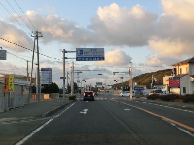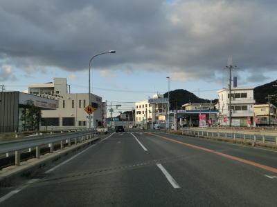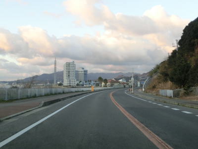 | 生穂南交差点からは勾配がほとんどない状態になり沿線の家屋が多くなる。淡路市の中心部と言える場所に差し掛かっている。市街地特有のごちゃごちゃ感もなくスムースに通行できたが、昼間であれば交通量が多く流れが悪い可能性もある。市役所の近くで兵庫r66大谷交差点や中心部の南で兵庫r88志筑交差点を通過するが、右折すればどちらの県道を走っても津名一宮ICに行く事ができる。r88は淡路島を横断する県道で、r66は淡路島の内陸部の横断する県道で南あわじ市でもR28に交差している。 淡路市の中心部の南では海沿いを走っている区間があるが、すぐ先に島(人口島?)があるため海沿い感は薄い。島は2つあり北にはイオン等のショッピングモール、南には淡路ワールドパークONOKOROがある。 |