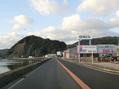 | 75.淡路市の中心部を走る | 76.兵庫r88志筑交差点 | 77.海(運河?)沿いを走る |