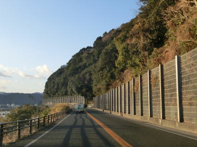 | 66.左側の海寄りには別荘もいくつか見られる | 67.海岸線沿いを快走 | 68.北向き車線には譲り車線あり |