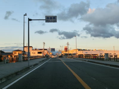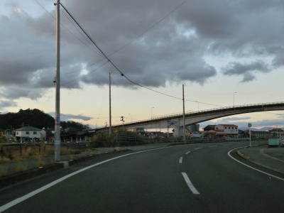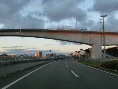 | 111.撫養川の手前を右にカーブ | 112.撫養川大橋の下を通過 | 113.大桑島交差点 |