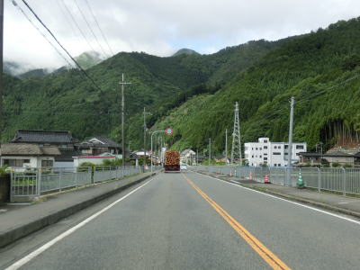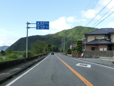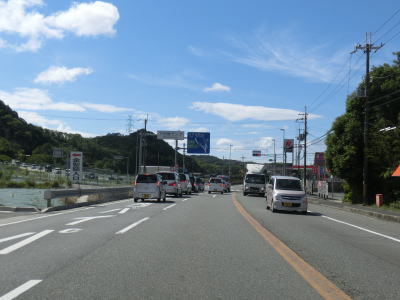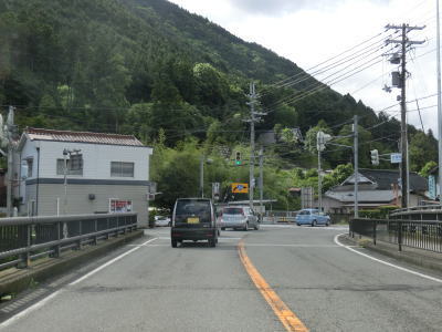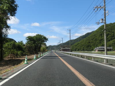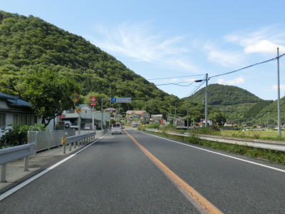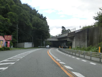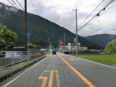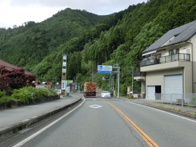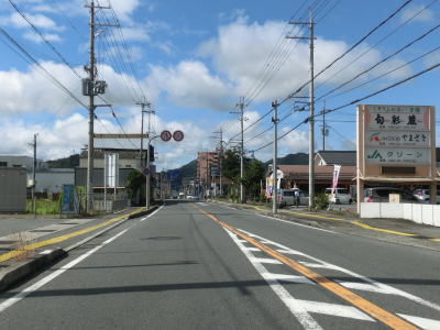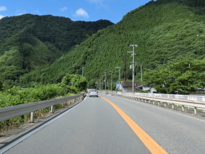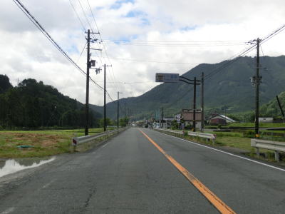 | 揖保川の右岸の2車線道路を走っているが、二桁国道とあってそこそこの交通量はあるものの流れは良い。徐々に沿線の建物が増えてきて一般家屋でない建物の割合が増えてくるため、宍粟市の中心部に入った事が分かる。伊沢川を渡ってすぐに道の駅「山崎」跡を通過する。1993年に開駅した「山崎」は2013年3月31日閉鎖され、走行時は更地になっていた。なお、2015年6月現在、閉鎖された道の駅は「山崎」の他に京都府和束町の「茶処和束」の2ヶ所だけである。 | ||