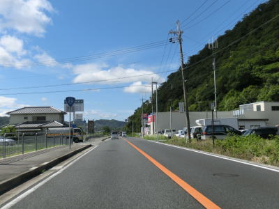 | 山崎インター南交差点からは中国道の南側を並走するように東の方角へ進む。中国道の高架をくぐり、南北を入れ替えてから程なくして安志峠を越えて姫路市に入る。峠と言っても前後の勾配がほとんどないため峠を越えたという印象は薄い。 | ||