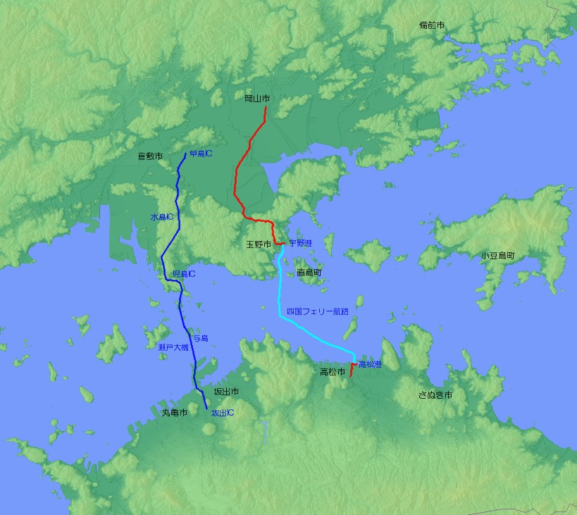| 主な経由地 | 岡山県岡山市〜倉敷市〜玉野市… …香川県高松市 |