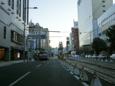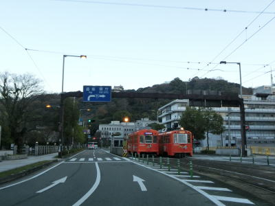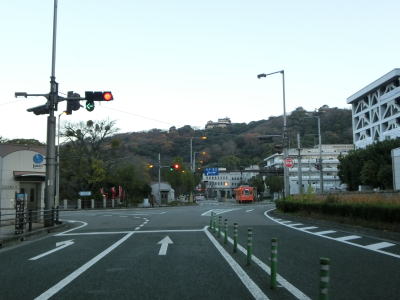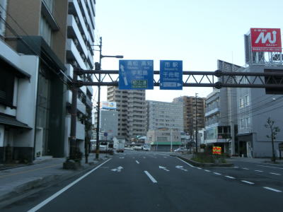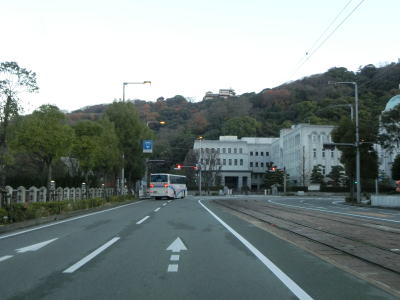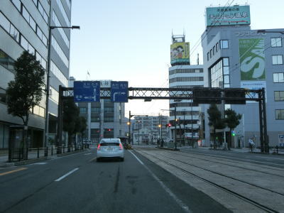 | 1.R11・R56・R317・R379・R440・R494松山市役所前交差点 | 2.市役所前電停 | 3.愛媛県庁の前を右に直角にカーブ |