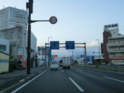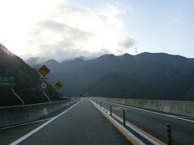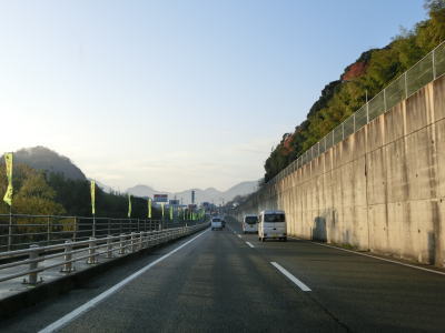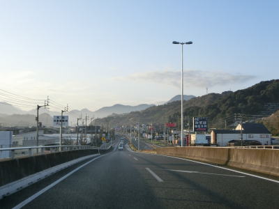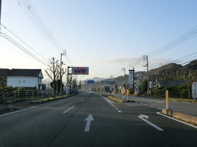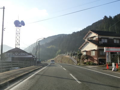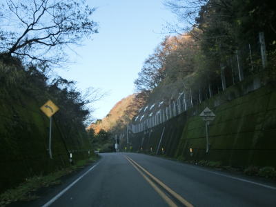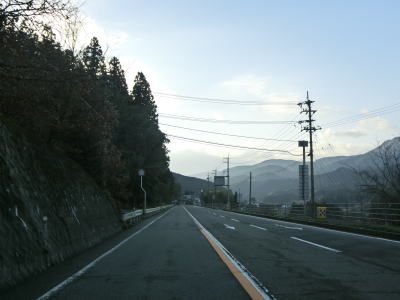 | R440が合流しても周辺の風景に大きな変化はない。北向きの松山方面には長い左折車線が設けられている事から、行楽シーズンの午後は相当混雑するのかもしれない。断続的に続く集落をいくつか通り抜けながら2車線道路を南下する。交通量は増えたものの一般的に言えば少ないと言える数なので流れもスムースであった。 | ||