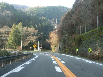 | センターライン付きの2車線道路とは言えカーブが多く、また沿線に建物はほとんどなく山道の雰囲気が濃い。等高線に沿っているが勾配は意外にきつく、前方に大型トラックがいればスローペースでの走行を強いられると思われる。 | ||