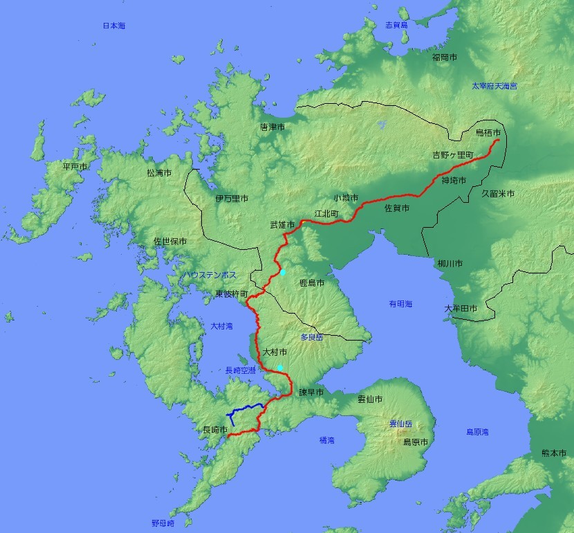 | 主な経由地 | 佐賀県鳥栖市〜吉野ヶ里町〜神埼市〜佐賀市〜小城市〜江北町〜武雄市〜 〜長崎県東彼杵町〜大村市〜諫早市〜長崎市 |