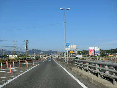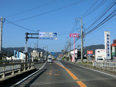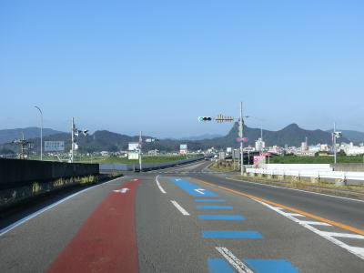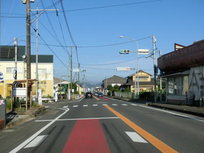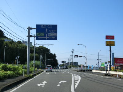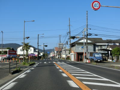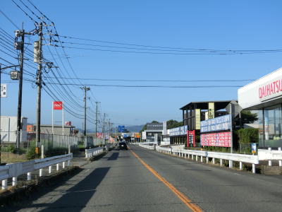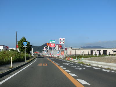 | 二俣交差点を過ぎて武雄高架橋を下った先で平面道路に戻る。武雄市の中心部の手前ではあるが沿線に多くの商業施設が建っている。その東端で造成工事が行われていたのでさらに商業施設が増えるかもしれない。 | ||