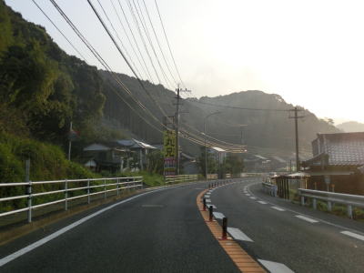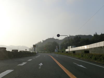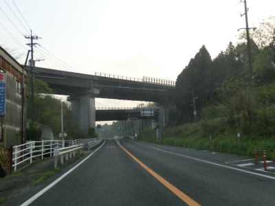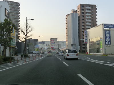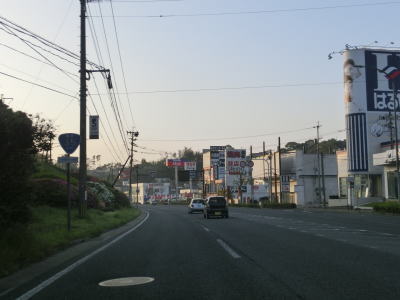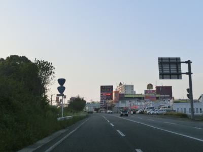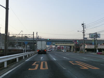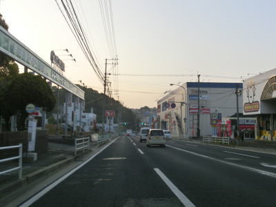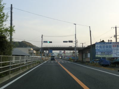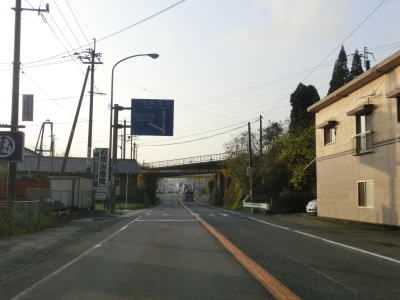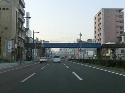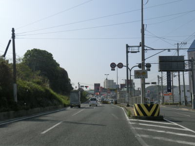 | 4車線道路になってからも交通量の多い幹線道路然とした雰囲気が続いている。JR佐世保線に沿って(と言っても間に建物があるため線路や架線は見えない)進む。日宇駅の東のやや急な勾配を上っていると佐世保線の上を通過して南北が入れ替わる。その後はアップダウンとカーブが連続するようになる。それでも山間部とは異なり沿線には商業施設が途切れる事なく建ち並んでおり賑やかな雰囲気である。 | ||