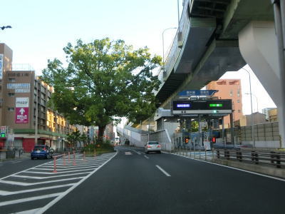 | 東片端交差点からも片側3車線道路が続いているが、東片端入口の料金所の真西には樹齢350年と言われているクスノキが左端車線と真ん中車線の間にある。東片端交差点から約500mで愛知r215清水口交差点を通過するが、ここで左端車線が左折専用車線となり、以北は片側2車線道路になる。片側2車線道路を北上していると清水口北交差点を通過するが、交差点付近で区境と通って名古屋市北区に入る。ただし、区境標識は設置されていないため、区が変わった事は認識し難い。 | ||
