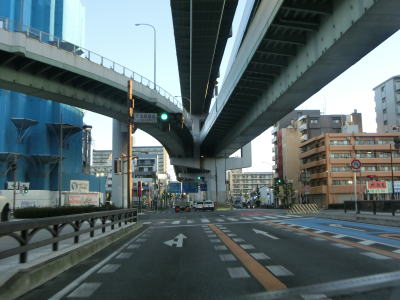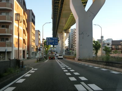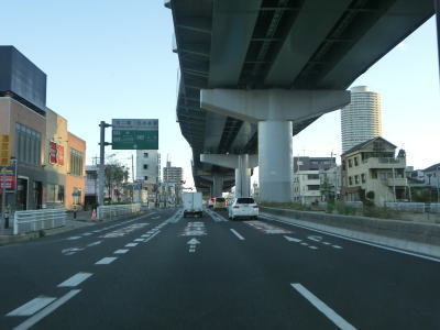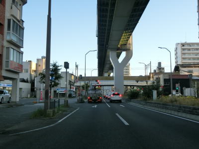 | 1.R19高岳交差点 | 2.名古屋高速都心環状線の下を走る | 3.名古屋高速の都心環状線と楠線の東片端JCT |