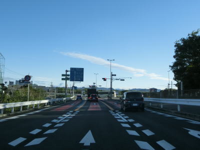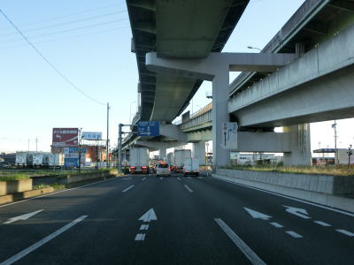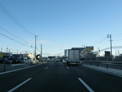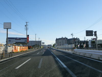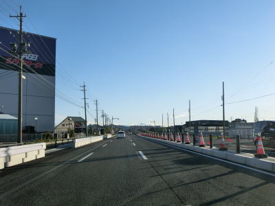| 村中交差点を過ぎると間にあった名古屋高速の代わりに普通の中央分離帯のある片側3車線道路となる。元々片側2車線だったものに車線が付加されたようでアスファルトはまだ新しく、工事に進捗によって車線切替が行われたようで消された白線が確認できる。この消された部分が日光を反射するのか、非常に見づらかった。愛知r179横内西交差点を通過してすぐに大口町に入る。 | ||