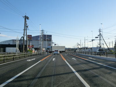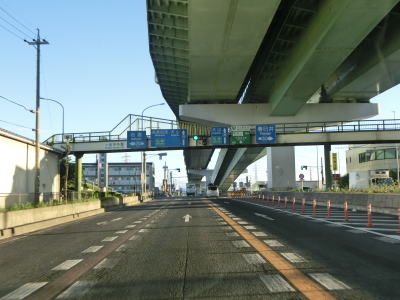 | 小牧市に入ってすぐに愛知r166多気中町東交差点、愛知r165下小針中島2南交差点を相次いで通過する。小牧南ランプを過ぎた後に愛知r25花塚橋南交差点と愛知r451花塚橋北交差点を通過するが、番号の大きい後者の方が整備された道路である。 | ||