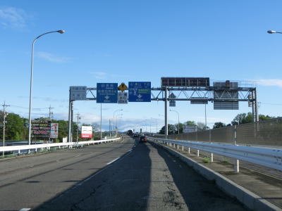 | 小牧市役所の北西でR155間々本町交差点を通過し、少し進むと小牧ICを通過する。小牧ICは東名と名神の境のインターチェンジであり、東京寄りの東側が東名、大阪寄りの西側が名神である。また、小牧ICは名古屋高速小牧線とも接続しており、一般道を経由せずに往来する事が可能である。小牧JCTというものも存在しているが、東名と中央道のジャンクションであり、ここを指す名称ではない。 東名の本線の下をくぐってすぐにR155小牧一宮バイパスとの村中交差点を通過する。現道とバイパスが並走しているR155だが、2019年4月の時点ではバイパスの両端とも現道に接続していない。 |